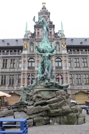 緊張忙碌的3天展會結束后,我們懷著輕松愉快的心情,在冬日暖陽的照耀下,乘車前往與荷蘭接壤的比利時。 安特衛普市政廳,文藝復興式的建筑,注重對稱,外立面裝飾甚為講究。我們很幸運的碰到了一對兒結婚的新人在市政廳注冊,沾沾喜氣,送上祝福。