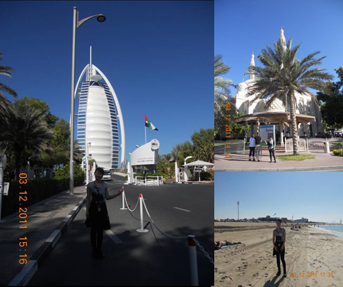 終于見到了傳說中用24噸黃金裝飾的海上阿拉伯神殿-七星級阿拉伯塔酒店~ 雖已年末,但迪拜依然30多度的高溫,從冬季來到了夏季,我們更加興奮,在海濱浴場,當地人正享受著寧靜的日光浴,而我們在海邊奔跑著、雀躍歡呼著,像回到童年一樣,享受著細膩的沙灘,尋找可愛有趣的貝殼... 而后參觀了茱美拉清真寺,伊斯蘭藝術中心(又稱伊斯蘭古董世界),伊斯蘭精品商城,茱美拉廣場-阿拉伯傳統建筑群與現代人工奇跡相互呼應,美不勝收。 還有馬蒂娜商城,具有阿拉伯神秘幽幻的建筑特色,在這里,你可以體驗阿拉伯式的購物環境。不過,俺只買了一個小小的冰箱貼以作留念~