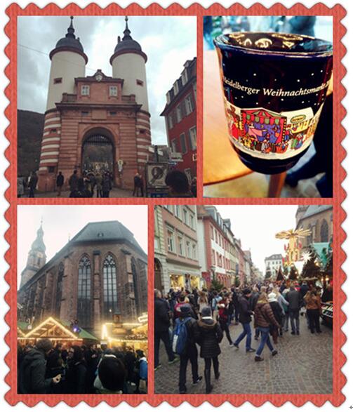 下午開車前往海德堡。海德堡是一個清新自然、歷史悠久的城鎮(zhèn),并且安寧又不失繁華。臨近圣誕節(jié),圣誕市場已經(jīng)開放,在集市上喝一杯Gluehwein,幸運的光環(huán)將會籠罩在你周圍。每一座城市每一年對于酒杯的設(shè)計都不一樣,非常值得帶回去珍藏。 在集市廣場乘坐纜車到達(dá)海德堡城堡,在山頂?shù)睦|車站可以遠(yuǎn)望海德堡、內(nèi)卡河山谷以及萊茵河平原的美景。我想,這美麗的景色一定會打動你。 海德堡實在有太多理由值得被人寵愛,這是一個“偷心”的城市。詩人歌德“把心遺失在海德堡”,馬克·吐溫說海德堡是他“到過的最美的地方”。