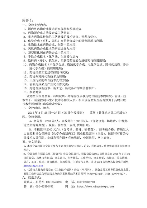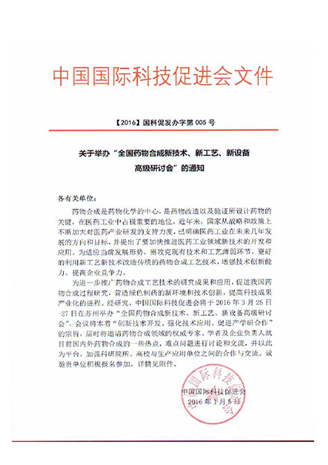 全國藥物合成新技術、新工藝、新設備高級研討會